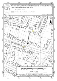 “The County Council has considered both the historical documentary evidence and user evidence in relation to this application and has decided the 1964 Adoption of the Application Route constitutes an event as set out in S.53(2)(a) Wildlife & Countryside Act 1981 and therefore to make a Legal Event Modification Order to record the Application Route as a Public Footpath. The order should record the width of the footpath as varying between 2-3 metres, as shown on the plan forming part of the Adoption Agreement, and the bollards located at the junction with Bushey Grove Road should be recorded as limitations.”